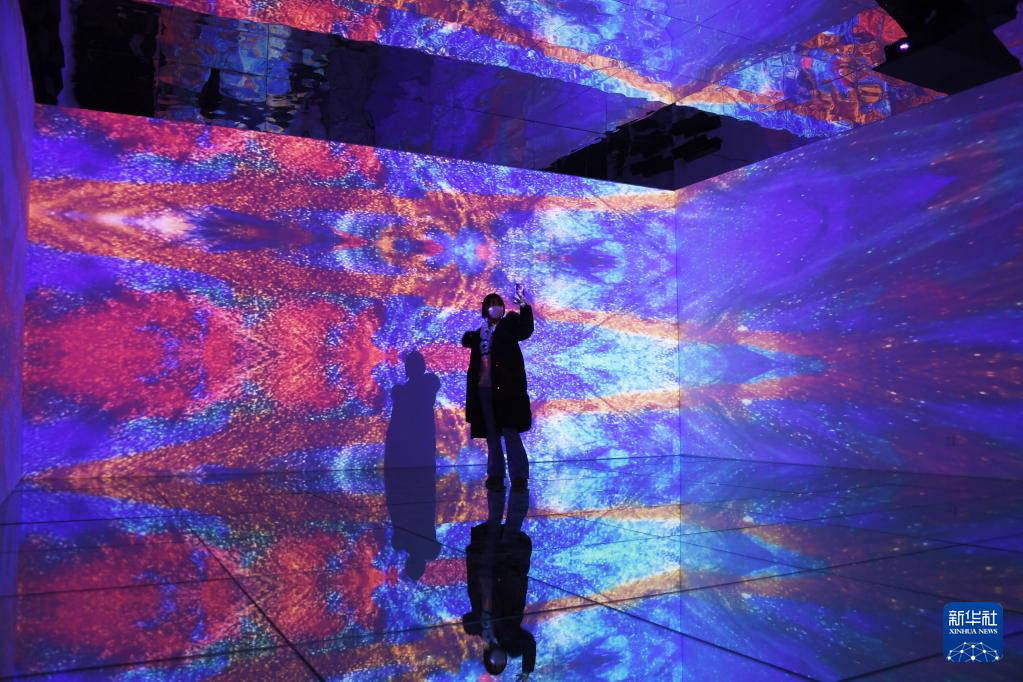 12月21日,在北京时代美术馆,观众在《声·生》当代艺术展中与艺术作品互动。新华社记者 任超 摄
