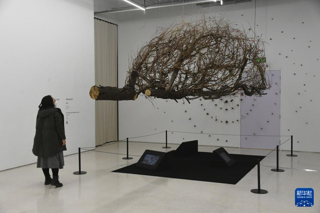 12月21日在北京时代美术馆拍摄的《声·生》当代艺术展中展出的艺术作品。新华社记者 任超 摄